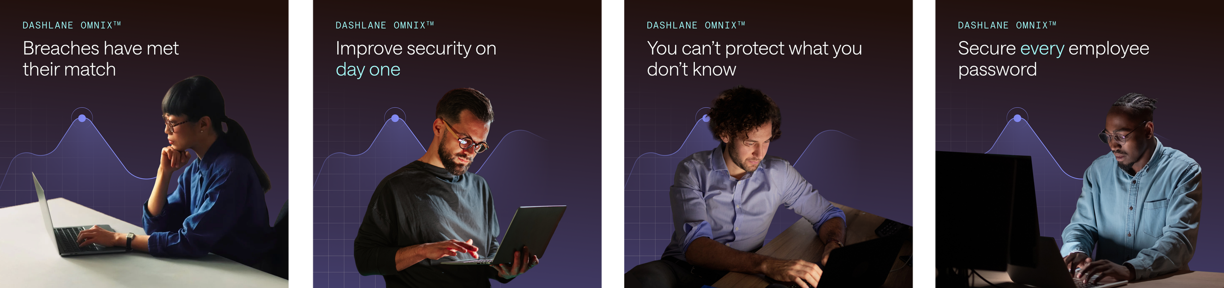 These evergreen B2B ads grew directly out of Dashlane's refreshed positioning work, which I supported. For this ongoing campaign, my job was to extract the most resonant concepts from four key user scenarios and bring them to life in simple, animated executions. The campaign became a way to show, not just tell, what Dashlane delivers.